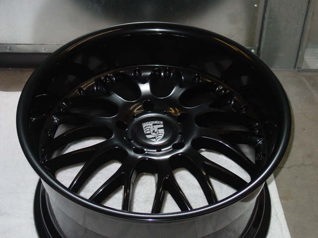 Sample Porsche Wheel in High Gloss Black & Aftermarket Rim in Anthracite Metallic